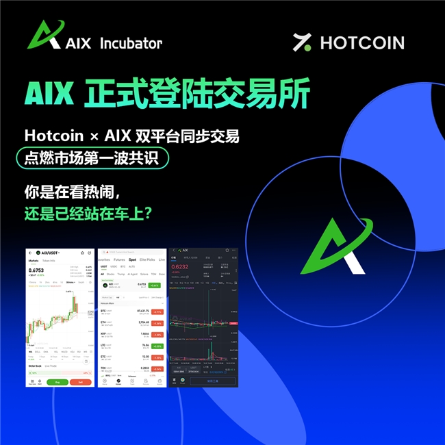 2025年12月22日,AIX孵化器宣布与全球知名数字资产交易平台Hotcoin交易所正式达成战略合作。同时AIX代币正式上线Hotcoin交易所,AIX/USDT交易对同步开放,标志着AIX在全球合规布局与数字资产流通体系建设方面迈出重要一步。